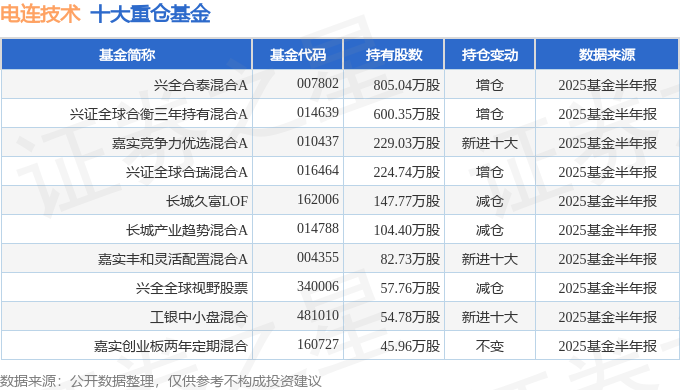 持有电连技术最多的基金为兴全合泰混合A,目前规模为44.93亿元,最新净值1.629(10月21日),较上一交易日上涨1.25%,近一年上涨24.57%。该基金现任基金经理为任相栋。
