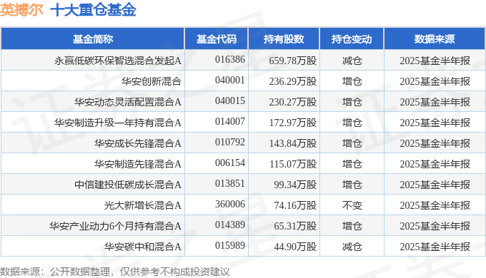 持有英搏尔最多的基金为永赢低碳环保智选混合发起A,目前规模为1.77亿元,最新净值0.8732(10月22日),较上一交易日下跌1.8%,近一年上涨5.04%。该基金现任基金经理为胡泽。