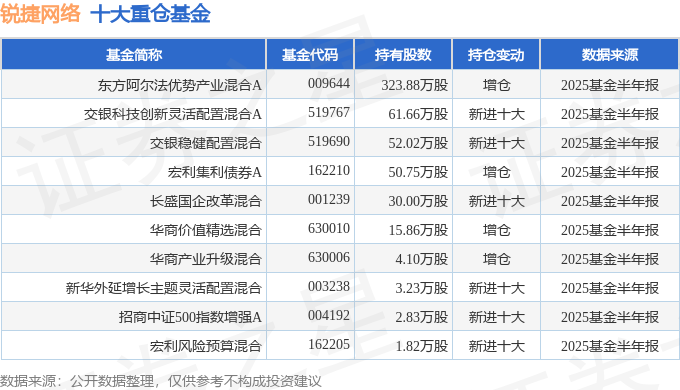 持有锐捷网络最多的基金为东方阿尔法优势产业混合A,目前规模为15.07亿元,最新净值1.93(10月21日),较上一交易日上涨4.13%,近一年上涨43.69%。该基金现任基金经理为唐雷。