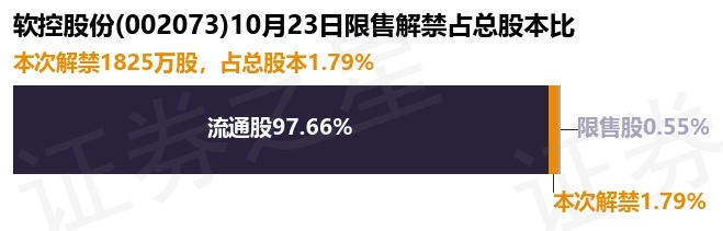 证券之星消息,根据市场公开信息整理,软控股份(002073)于10月23日将有1825.0万股限售股份解禁,为公司股权激励限售股份,占公司总股本1.79%。(本次数据根据历史公告整理得出,实际情况以上市公司最新公告为准)最近一年内,该股累计解禁2921.39万股,占总股本的2.86%。本次解禁后,公司还有560.21万股限售股份,占总股本0.55%。具体如下图所示:
