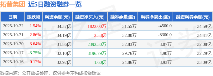 拓普集团融资融券信息显示,融资方面,当日融资买入6.65亿元,融资偿还6.46亿元,融资净买入1822.0万元。融券方面,融券卖出7500.0股,融券偿还1.2万股,融券余量31.55万股,融券余额2243.03万元。融资融券余额34.59亿元。