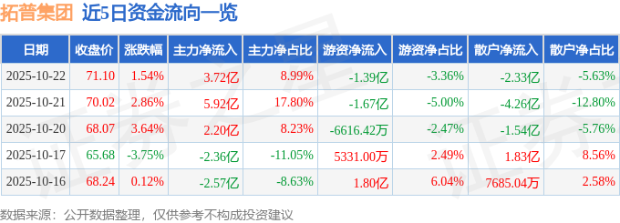 10月22日的资金流向数据方面,主力资金净流入3.72亿元,占总成交额8.99%,游资资金净流出1.39亿元,占总成交额3.36%,散户资金净流出2.33亿元,占总成交额5.63%。