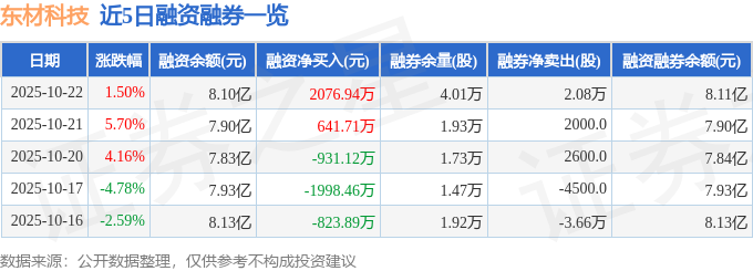证券之星消息,截至2025年10月22日收盘,东材科技(601208)报收于19.59元,上涨1.5%,换手率4.02%,成交量40.9万手,成交额8.0亿元。