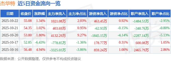 10月22日的资金流向数据方面,主力资金净流入1021.08万元,占总成交额2.03%,游资资金净流入463.45万元,占总成交额0.92%,散户资金净流出1484.53万元,占总成交额2.95%。