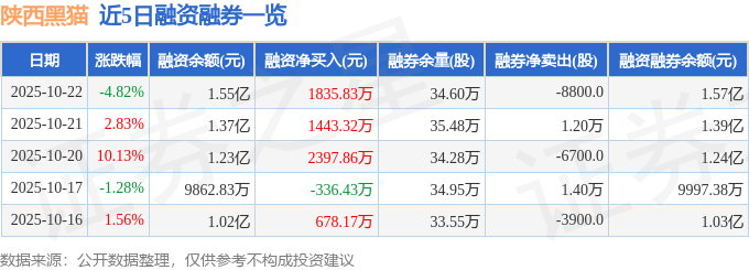 证券之星消息,截至2025年10月22日收盘,陕西黑猫(601015)报收于4.15元,下跌4.82%,换手率5.86%,成交量119.7万手,成交额5.0亿元。