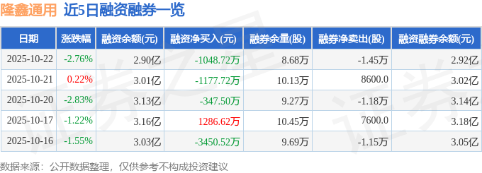 隆鑫通用融资融券信息显示,融资方面,当日融资买入2084.29万元,融资偿还3133.01万元,融资净偿还1048.72万元。融券方面,融券卖出0.0股,融券偿还1.45万股,融券余量8.68万股,融券余额113.1万元。融资融券余额2.92亿元。