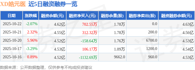 XD皓元医融资融券信息显示,融资方面,当日融资买入3119.76万元,融资偿还2417.21万元,融资净买入702.55万元。融券方面,融券卖出0.0股,融券偿还0.0股,融券余量1.78万股,融券余额141.92万元。融资融券余额4.63亿元。