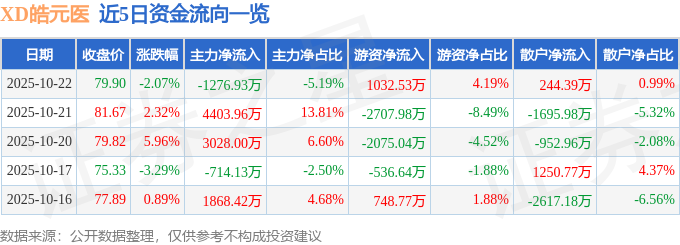 证券之星消息,截至2025年10月22日收盘,XD皓元医(688131)报收于79.9元,下跌2.07%,换手率1.45%,成交量3.07万手,成交额2.46亿元。