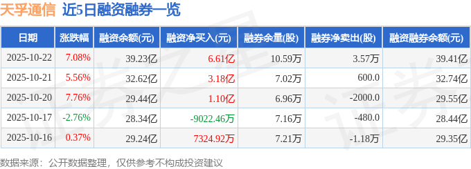天孚通信融资融券信息显示,融资方面,当日融资买入15.92亿元,融资偿还9.32亿元,融资净买入6.61亿元,净买入额两市排名第2,连续3日净买入累计10.89亿元。融券方面,融券卖出5.76万股,融券偿还2.18万股,融券余量10.59万股,融券余额1891.27万元。融资融券余额39.41亿元。