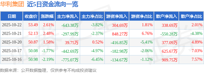 证券之星消息,截至2025年10月22日收盘,华利集团(300979)报收于53.49元,上涨2.61%,换手率0.27%,成交量3.17万手,成交额1.68亿元。