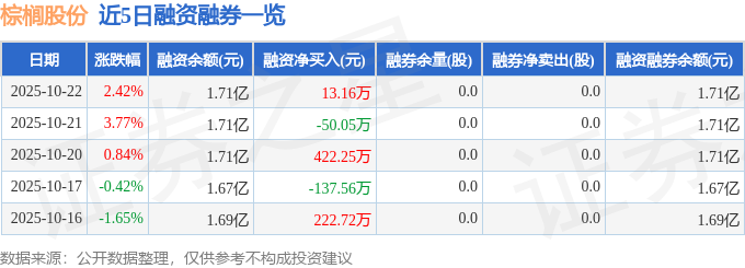 证券之星消息,截至2025年10月22日收盘,棕榈股份(002431)报收于2.54元,上涨2.42%,换手率2.91%,成交量52.67万手,成交额1.33亿元。