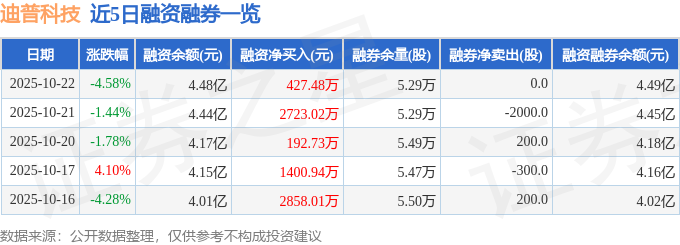 迪普科技融资融券信息显示,融资方面,当日融资买入6984.99万元,融资偿还6557.51万元,融资净买入427.48万元,连续3日净买入累计3343.24万元。融券方面,融券卖出0.0股,融券偿还0.0股,融券余量5.29万股,融券余额106.81万元。融资融券余额4.49亿元。