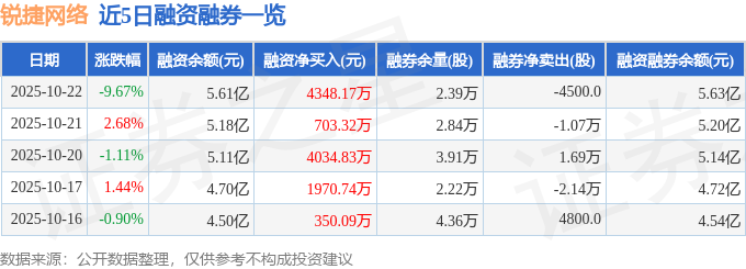 锐捷网络融资融券信息显示,融资方面,当日融资买入1.25亿元,融资偿还8161.54万元,融资净买入4348.17万元,连续3日净买入累计9086.32万元。融券方面,融券卖出5300.0股,融券偿还9800.0股,融券余量2.39万股,融券余额184.91万元。融资融券余额5.63亿元。