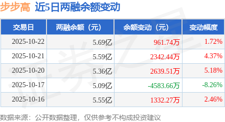 证券之星消息,10月22日,步步高(002251)融资买入9605.88万元,融资偿还8644.14万元,融资净买入961.74万元,融资余额5.69亿元,近3个交易日已连续净买入累计5943.69万元。