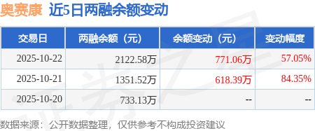 证券之星消息,10月22日,奥赛康(002755)融资买入1360.95万元,融资偿还589.89万元,融资净买入771.06万元,融资余额2122.58万元,近3个交易日已连续净买入累计2122.58万元。