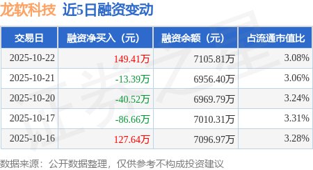 证券之星消息,10月22日,龙软科技(688078)融资买入763.66万元,融资偿还614.25万元,融资净买入149.41万元,融资余额7105.81万元。