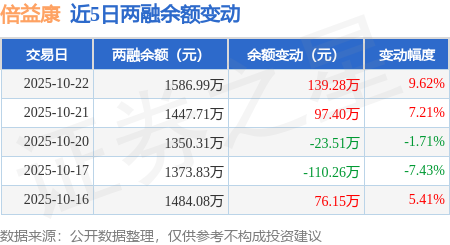 证券之星消息,10月22日,倍益康(920199)融资买入264.9万元,融资偿还125.62万元,融资净买入139.28万元,融资余额1586.99万元。