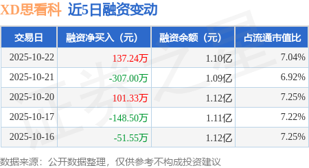证券之星消息,10月22日,XD思看科(688583)融资买入216.52万元,融资偿还79.28万元,融资净买入137.24万元,融资余额1.1亿元。
