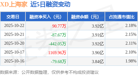 证券之星消息,10月22日,XD上海家(600315)融资买入1514.56万元,融资偿还1423.79万元,融资净买入90.77万元,融资余额3.92亿元。