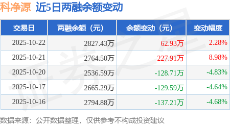 证券之星消息,10月22日,科净源(301372)融资买入312.53万元,融资偿还249.6万元,融资净买入62.93万元,融资余额2827.43万元。