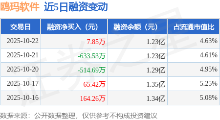 证券之星消息,10月22日,鸥玛软件(301185)融资买入459.8万元,融资偿还451.95万元,融资净买入7.85万元,融资余额1.23亿元,近20个交易日中有11个交易日出现融资净买入。