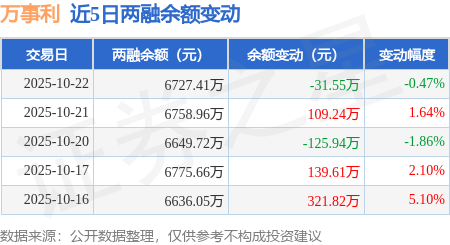 证券之星消息,10月22日,万事利(301066)融资买入374.15万元,融资偿还405.69万元,融资净卖出31.55万元,融资余额6727.41万元。