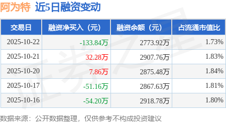 证券之星消息,10月22日,阿为特(920693)融资买入111.58万元,融资偿还245.42万元,融资净卖出133.84万元,融资余额2773.92万元。