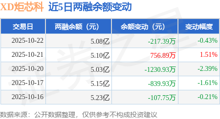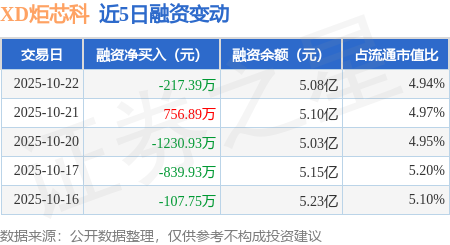 证券之星消息,10月22日,XD炬芯科(688049)融资买入6194.59万元,融资偿还6411.98万元,融资净卖出217.39万元,融资余额5.08亿元。