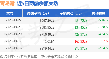证券之星消息,10月22日,青岛港(601298)融资买入580.22万元,融资偿还1074.97万元,融资净卖出494.75万元,融资余额9082.15万元。