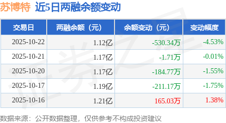 证券之星消息,10月22日,苏博特(603916)融资买入297.46万元,融资偿还827.58万元,融资净卖出530.12万元,融资余额1.12亿元。