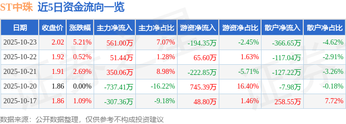 证券之星消息,截至2025年10月23日收盘,ST中珠(600568)报收于2.02元,上涨5.21%,换手率2.4%,成交量40.0万手,成交额7940.3万元。