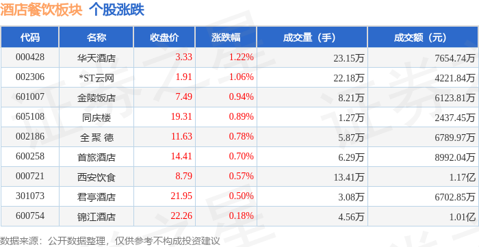 证券之星消息,10月23日酒店餐饮板块较上一交易日上涨0.57%,华天酒店领涨。当日上证指数报收于3922.41,上涨0.22%。深证成指报收于13025.45,上涨0.22%。酒店餐饮板块个股涨跌见下表: