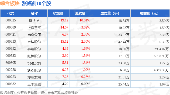 从资金流向上来看,当日综合板块主力资金净流入7346.99万元,游资资金净流出9016.57万元,散户资金净流入1669.58万元。综合板块个股资金流向见下表: