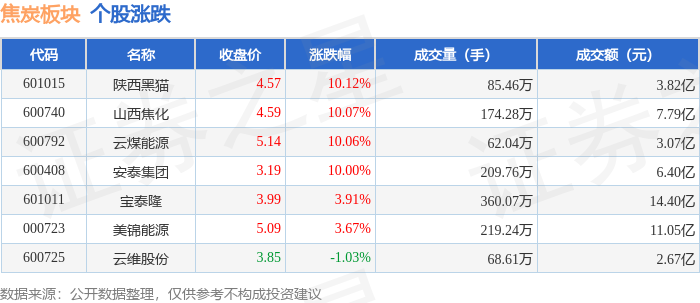 证券之星消息,10月23日焦炭板块较上一交易日上涨6.18%,陕西黑猫领涨。当日上证指数报收于3922.41,上涨0.22%。深证成指报收于13025.45,上涨0.22%。焦炭板块个股涨跌见下表: