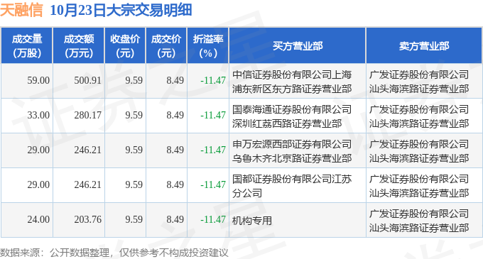 证券之星消息,10月23日天融信发生大宗交易,交易数据如下: