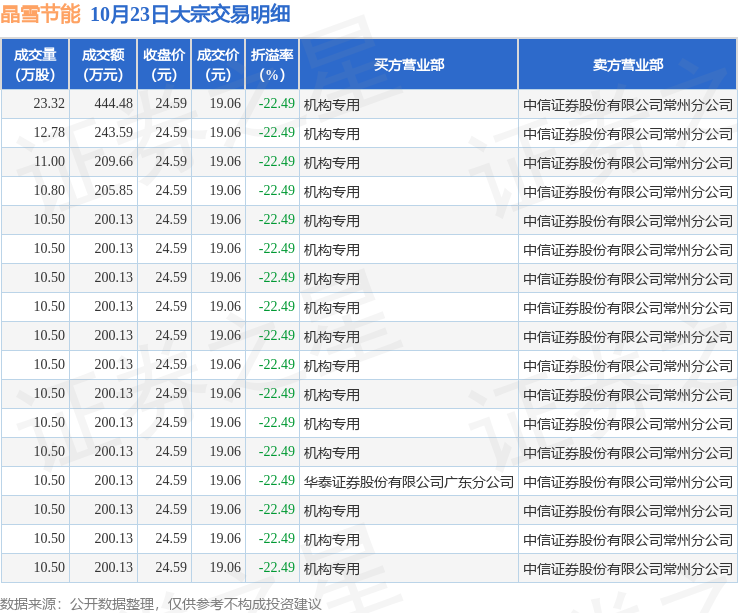 证券之星消息,10月23日晶雪节能发生大宗交易,交易数据如下:
