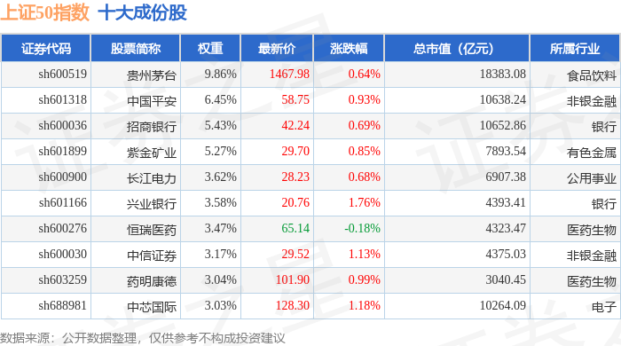 证券之星消息,10月23日,上证50(000016)指数报收于3026.9点,涨0.56%,成交1212.08亿元,换手率0.35%。当日该指数成份股中,上涨的有41家,邮储银行以4.71%的涨幅领涨,下跌的有8家,海光信息以2.33%的跌幅领跌。