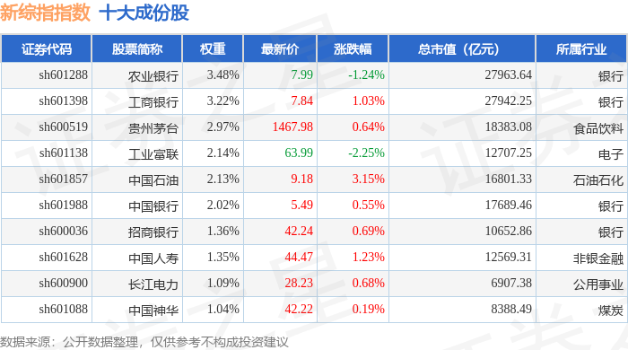 新综指(000017)指数十大成份股详情如下: