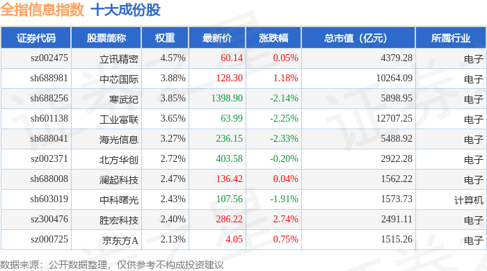 证券之星消息,10月23日,全指信息(000993)指数报收于8469.44点,跌0.51%,成交2096.86亿元,换手率1.76%。当日该指数成份股中,上涨的有69家,江波龙以5.12%的涨幅领涨,下跌的有89家,生益科技以4.87%的跌幅领跌。