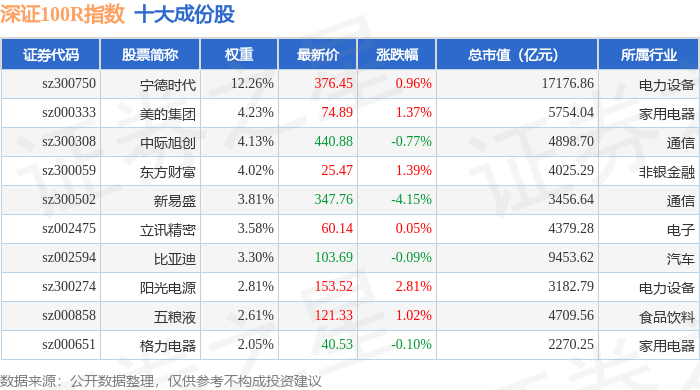 资金流向方面,深证100R(399004)指数成份股当日主力资金净流出合计29.3亿元,游资资金净流出合计3970.79万元,散户资金净流入合计29.7亿元。成份股资金流向详情见下表: