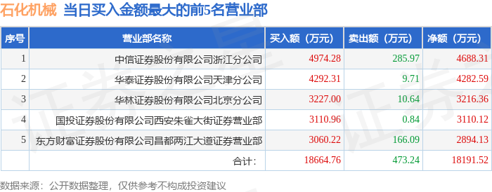 证券之星消息,沪深交易所2025年10月23日公布的交易公开信息显示,石化机械(000852)因日涨幅偏离值达到7%的前5只证券登上龙虎榜。此次是近5个交易日内第2次上榜。