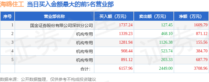 证券之星消息,沪深交易所2025年10月23日公布的交易公开信息显示,海鸥住工(002084)因日跌幅偏离值达到7%的前5只证券登上龙虎榜。此次是近5个交易日内第1次上榜。