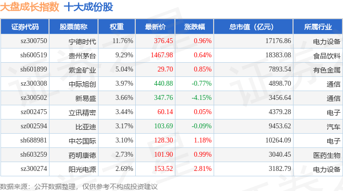 证券之星消息,10月23日,大盘成长(399372)指数报收于5208.91点,涨0.45%,成交1649.61亿元,换手率0.78%。当日该指数成份股中,上涨的有47家,赣锋锂业以5.56%的涨幅领涨,下跌的有16家,新易盛以4.15%的跌幅领跌。