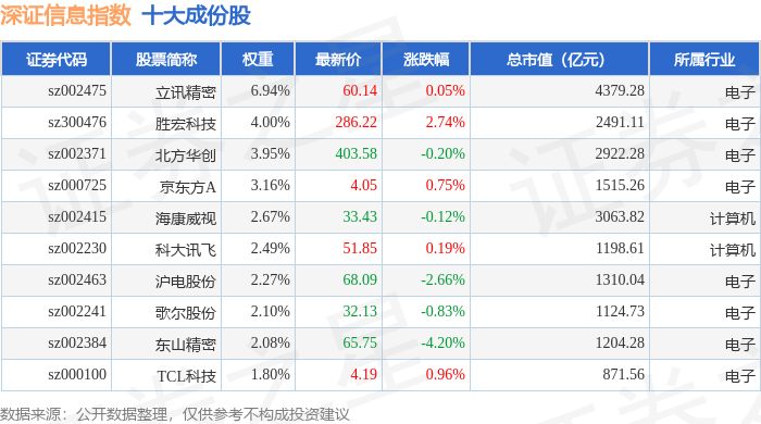 深证信息(399620)指数十大成份股详情如下: