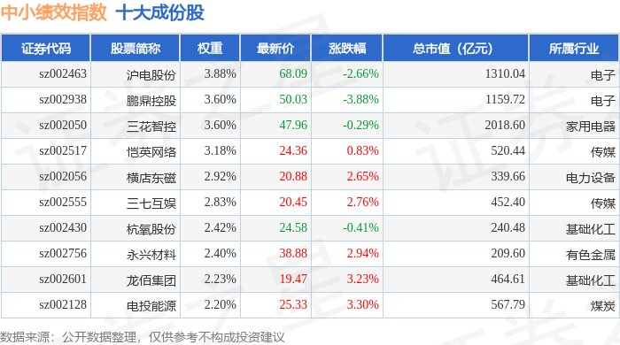 中小绩效(399658)指数十大成份股详情如下: