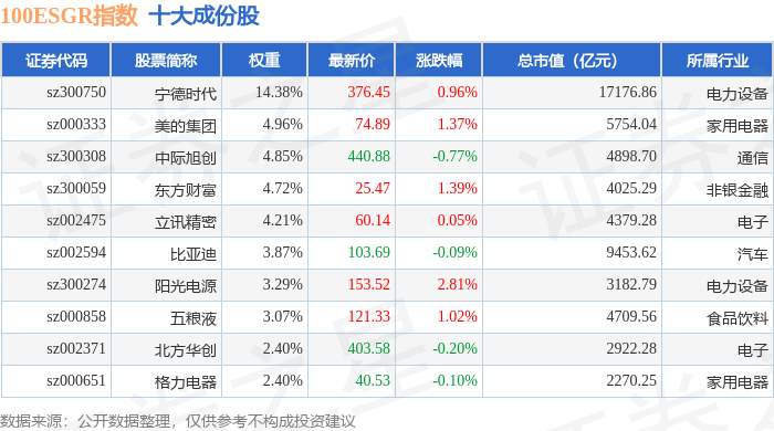 证券之星消息,10月23日,100ESGR(470027)指数报收于8176.69点,涨0.2%,成交1420.18亿元,换手率0.97%。当日该指数成份股中,上涨的有39家,赣锋锂业以5.56%的涨幅领涨,下跌的有39家,天孚通信以6.36%的跌幅领跌。