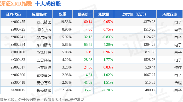 深证XRR(470046)指数十大成份股详情如下: