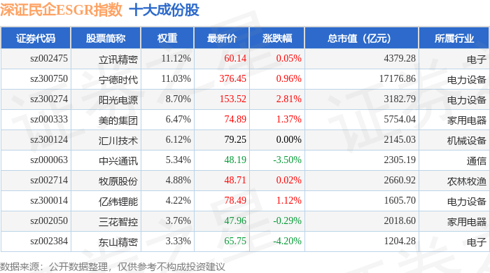 深证民企ESGR(470056)指数十大成份股详情如下:
