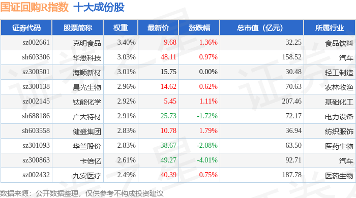 证券之星消息,10月23日,国证回购R(480063)指数报收于3914.41点,跌0.11%,成交116.34亿元,换手率1.26%。当日该指数成份股中,上涨的有25家,恒逸石化以5.27%的涨幅领涨,下跌的有24家,帝奥微以4.44%的跌幅领跌。
