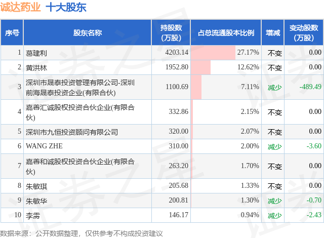 根据诚达药业2025年中报公布的十大股东详情如下: